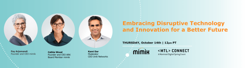 Join Fay Arjomandi founder and CEO mimik, Cathie Wood founder and CEO of Ark invest and board member of mimik and moderated by Kami Dar on MTL connect event on “Embracing Disruptive Technology and Innovation for a Better Future”. Fay and Cathie will discuss the future of disruptive technology and investment in a hyperconnected world and creating a sustainable economy.